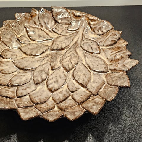 Fajance, Stort fad, Burleigh Felicity, Fineste Burleigh Felicity-fad med orangerøde blomster.