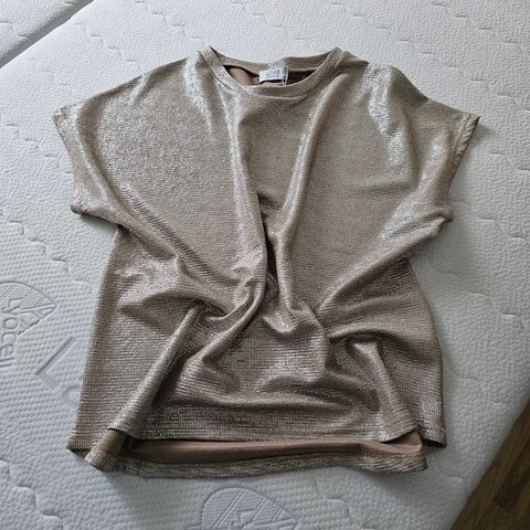 Bluse, Shubette, str. 42, Guld, Shiny guld lamé , Næsten som ny, Meget flot guld overdel i skinnende blødt guldlamé