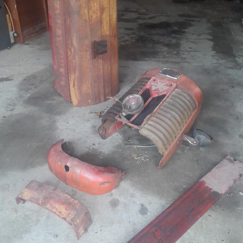 MOTORHJELM, MGB motorhjelm I stål, lige klar til spartling og lakering.