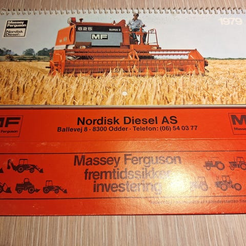 I kalenderen er der billeder af forskellige MF-traktorer og tegninger af diverse ænder og gæs med angivelse af jagttider.
