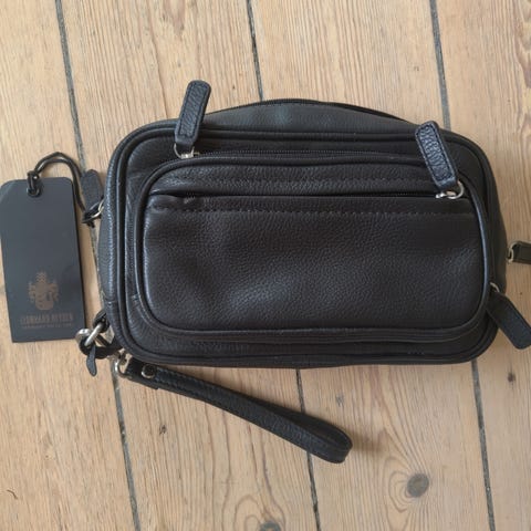 Håndtaske, herretaske, helt ny herre håndtaske i farven sort/brun. b 43 cm h 28 cm d 19 cm med stor forlomme.