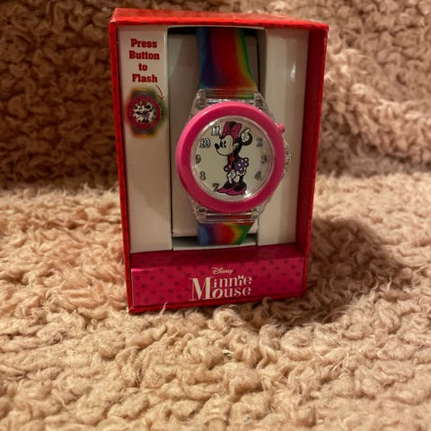 Disney's The Haunted Mansion armbåndsur. Har meget få brugspor og æsken har en smule slid (se sidste 3 billeder), men udover det er i meget pæn stand. Uret skulle virke fint, dog skal der et nyt batteri i. Bæltet er af ægte læder. Bag på uret står der: "Water resistant stainless steel caseback." Uret er en smule sjældent.