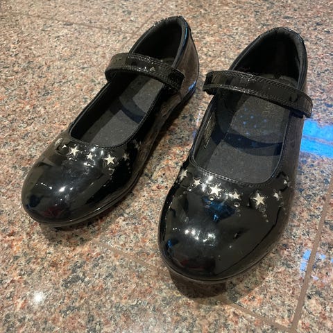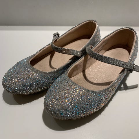 Nye ballerina dåbssko i satin gule. Str. 20/21 mål på sål ca. 11cm. Passer 6/9 mdr.