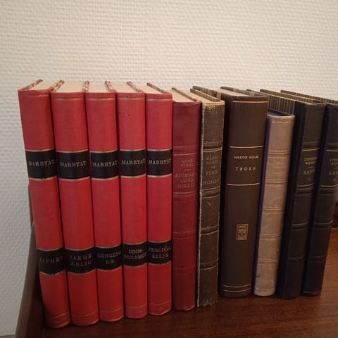 3 gamle blå hardcover-lærred ungdoms bøger af forfatter Kaptajn Marryat. Bøgerne er trykt hos Kunstforlaget Danmark - den ene i 1913. De er alle 3 slidte og skrevet på første side, men kan stadig læses. Snup alle 3 for 35,-
