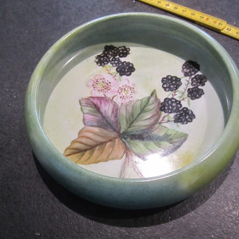 Skål eller askebæger i sjælden mørke grøn glas eller krystal. Har et par ganske små afslag som kun ses hvis man kigger rigtig godt efter. Deraf prisen.