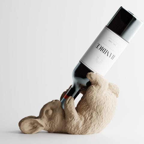 Sjov vinholder passer til alle vin & spiritus flaske. Gorilla der bæller vin eller sprut direkte fra flaske. Det er en gave som vi aldrig har fået taget i brug så den er stadig i original indpakning og kan derfor anvendes som julegave eller hadegave. Bemærk at det hvide fnuller på billederne er små flamingo stykker. Se foto af kassen for flere informationer.