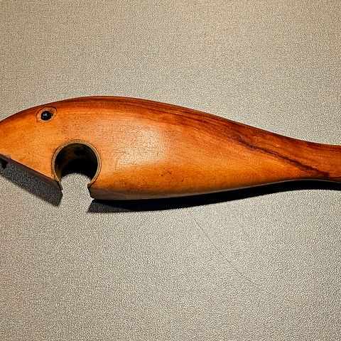 @ Flot retro oplukker med håndtag udført i teaktræ. Navn præget i skaft men kan ikke læse det. Med brugsspor.