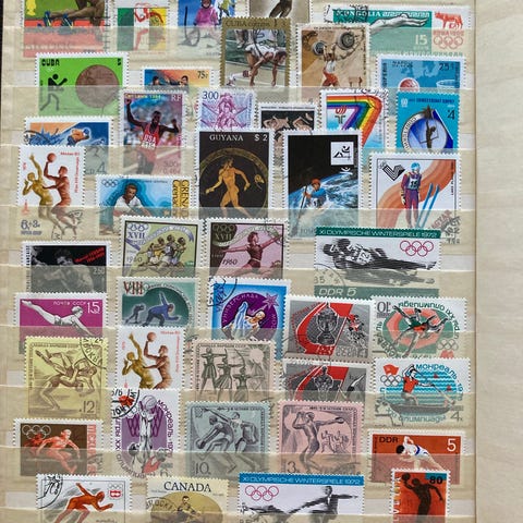 Stor frimærkesamling sælges. Der er rigtig mange fra internationale sportsbegivenheder. Har arvet dem og har ingen forstand på frimærker så måske der er en guldklump imellem.