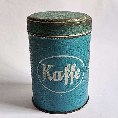 Kaffedåse fra Christgaus Kaffe med deres logo med en gammel kaffemølle. Fremstår i fin stand - alder taget i betragtning. Er flot og brugbar på indersiden så du kan bruge den til at have kaffe i. Kaffen produceres i dag hos BKI.