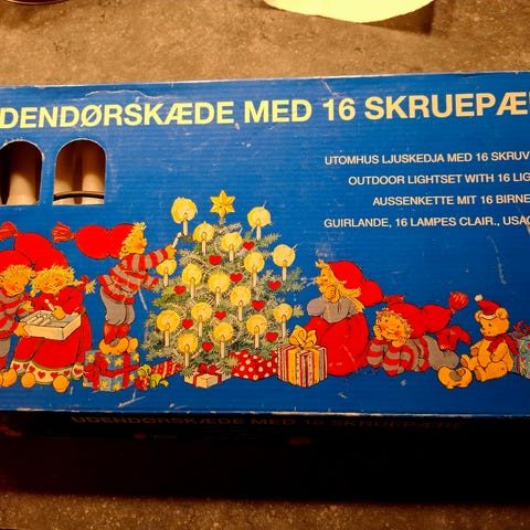 Der er en krands foroven, hvor der kommer 6 lyskæder ned. Den sættes til EL.