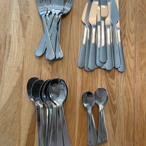 Bestik, Bestik sort , Staniless steel, 6 sæt sort bestik ,staninelees Steel sælges samlet, brugt meget få gange ,se billeder ,24 dele, fast pris kr 500