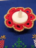 Lyseholdere, 6 små fine hjemmehæklede og nyvaskede lyseholdere. De er meget dekorative når man bruger batterilys.