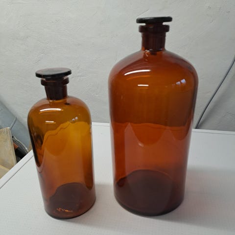 Flasker, 10 Apoteker flasker, De tre små (6-7 cm høje) samt søsygedråber 30 kr/stk.