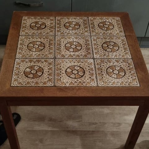 Kakkelbord, , egetræ, b: 85 l: 130 h: 50, Evt Sallingbroe, er på 2 sal og der er ingen elevator.