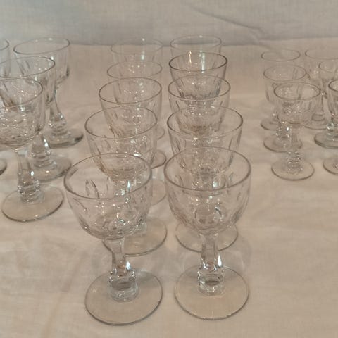 Fantastisk sæt med div. vinglas, ølglas, champagneglas, isasietter og karafler, i alt 39 dele fra krystal-servicet Silicien, oprindeligt fra Val Saint Lambert men også produceret på licens på Holmegaard, 1916