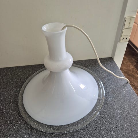 Mørk Holmegaard Etude glas-pendel (kun skærm). Loftslampen er velholdt klassiker. Diameter cirka 40 cm. Højde cirka 28 cm.