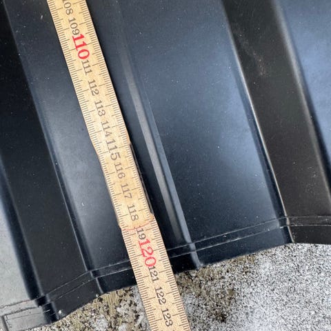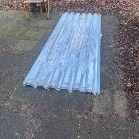 Tagplade, b: 82 l: 2,74, Tagplade i bølger stål kan evt. Bruges til brændeskur el. Lign