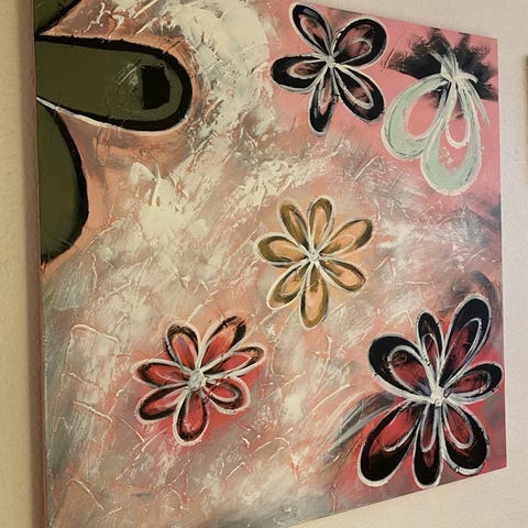 Oliemaleri, Ahlmann, motiv: Blomster/Have
