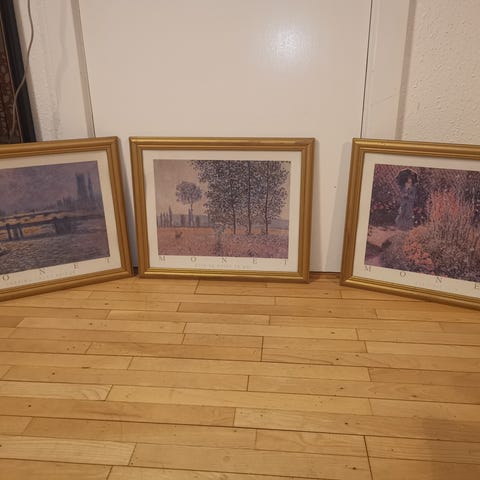 tryk, Monet tryk, motiv: bjerge og eng, b: 120 h: 90