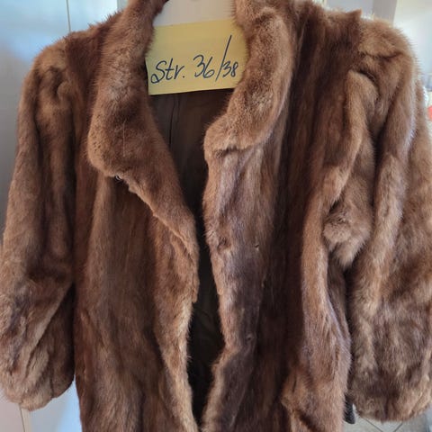 Frakke, str. findes i flere str., Yorn, Vintage damefrakke med sort fløjlskrave og bælte.