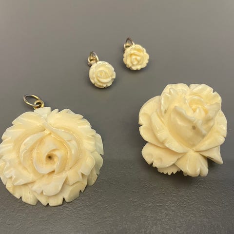 P.S. Der følger et ganske lille vedhæng udskåret som en rose med i køber:-)