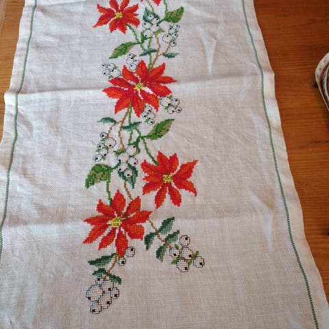Løber/dug, Smuk håndbroderet juledug/løber. Mål 92x27cm