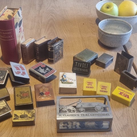 Andre samleobjekter, Tændstikæskeholder med påskriften, Tændstikæskeholder i tin med påskriften " Hilsen fra Spiraltoppen Drammen "