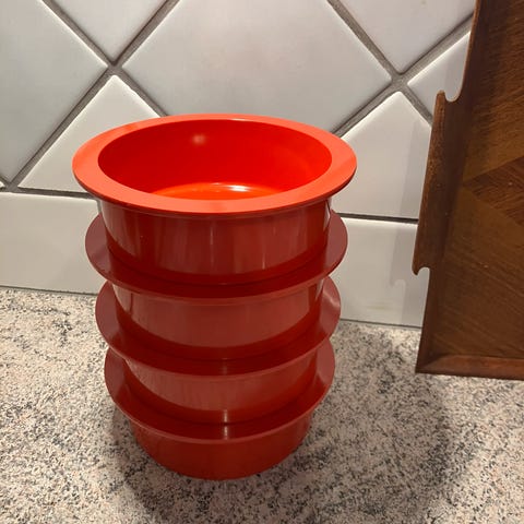 Jule gaveide. Børne service :4 stk. Ældre dybe Børne tallerkner Røde og blå Mrk. Plast-teknik Göteborg :Se Billede 2,