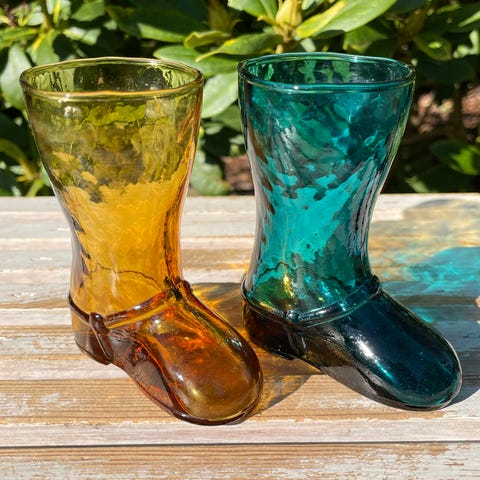Super fine små glas støvler, de er i god stand, de er 4,5 cm høje og 6 cm lange, sælges som sæt til 100 kr.