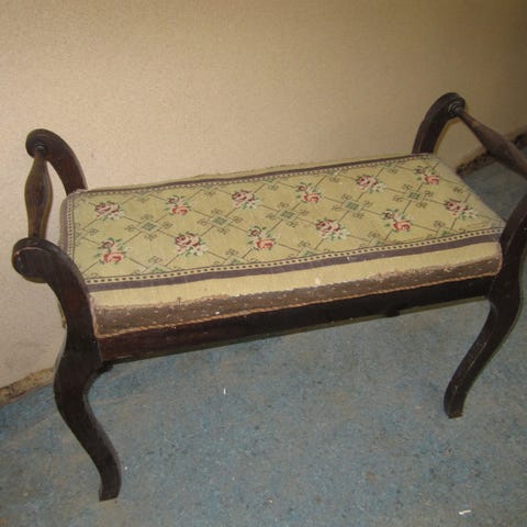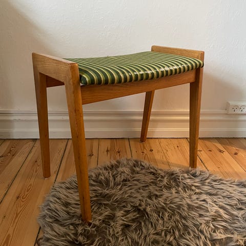 Anden arkitekt, Skammel, pianobænk i sort bejdset træ, betrukket med gult uld.
