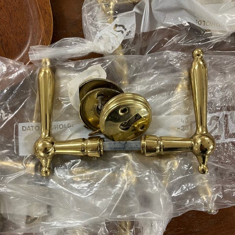 Messing dørgreb, Messing, 100 år gl., Ældgamle messingdørgreb trænger til