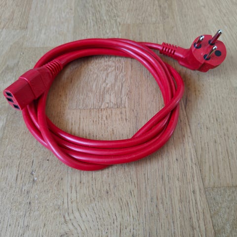 Standard strømkabel der passer til diverse laptops og projektorer. To af dem er med dansk jord-stik.