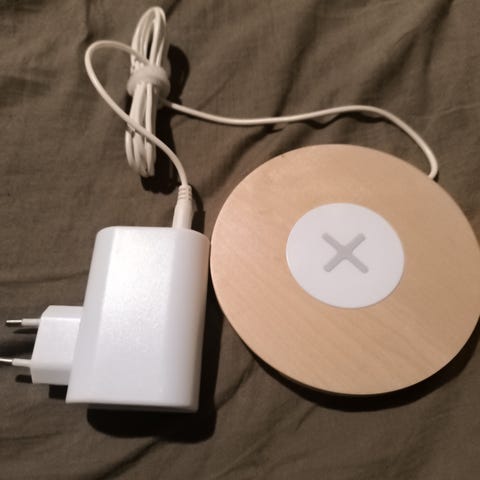 Vi sælger en Ikea nordmärke 3 tredobbelt USB oplader med USB udgang, i lys træfarve med træramme.