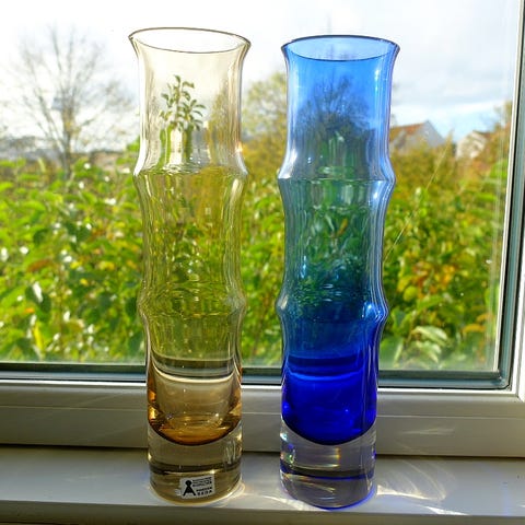 Glas, Vase, Aseda,Vintage Blå klar Bamboo vase