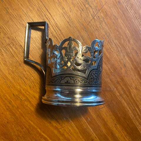 Russisk cloisonne teglasholder, Sølv plet emalje, 100 år gl.