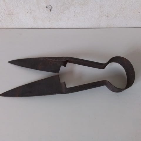 Antik fåresaks, Jern, 100 år gl., Ældgammel fåresaks til pynt