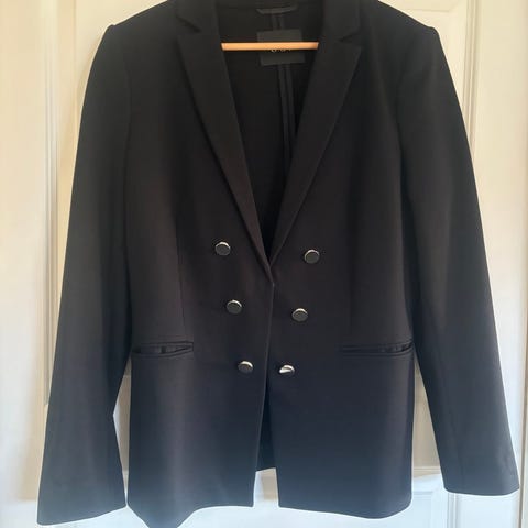 Blazer, str. 36, Chico's, Sølv, ., God men brugt, Flot sølv blazer fra chico's str 0, står der i den. Se mål på billederne. Jeg bruger S/M og passer den. Flot struktur i stoffet. God til nytår. Jeg kan sende i dag.