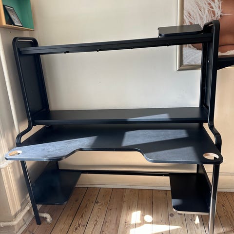 Computerbord, b: 159 d: 80 h: 72, Med skuffeelement til der kan stå under bordet. Det er kun bordet inkl skuffeelement der er til salg (ikke effekter på/under/ved bord).