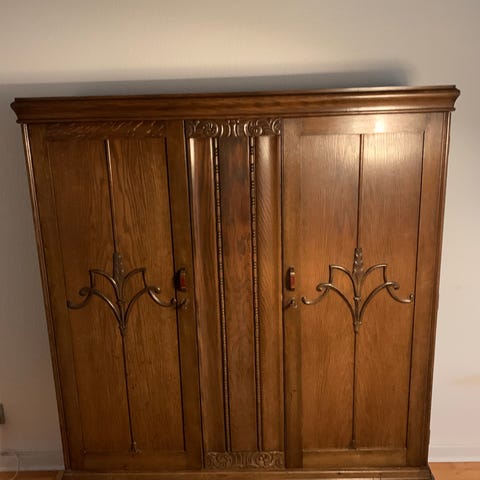 Dækketøjsskab, Dækketøjskab i egetræ. 3 fløjet. Udført med skuffer i øverste del. Yderst velholdt. LxDxH: 176x44,5x119,5 cm. Kan besigtiges i Ølsted, 8723 Løsning.