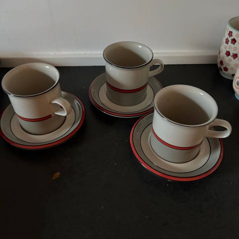 Kaffekopper og underkopper, Hisar, Aldrig brugt, kun nogle dele taget ud af pakkerne.