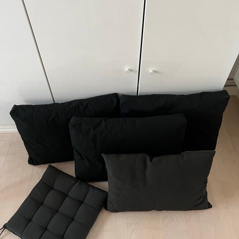 Andet, 100 % bomuld, Puder i forskellige størrelser, velegnet til hængesofaen, hængekøjen eller alm. afslapning i sommerhuset! 8 stk i alt. Sælges enkeltvis for 30kr. Alle 8 stk for 200kr