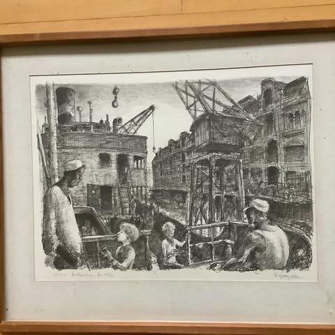 Litografi, Ib Spang Olsen, motiv: Adam og Eva uden æblet, b: 44 h: 61, Original ramme i fyrretræ