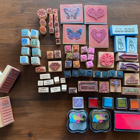 Stor stempelpakke, Jeg tror kun der er et af stemplerne som har været brugt en gang, ellers er alle ubrugte.