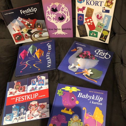 Hobbybøger, Kreative bøger med papir og klip, Pæne og velholdte indbundne bøger om papir, sangskjulere, papirklip, papirsblomster og div klipperier til børn og andre kreative sjæle og til hverdag og fest.