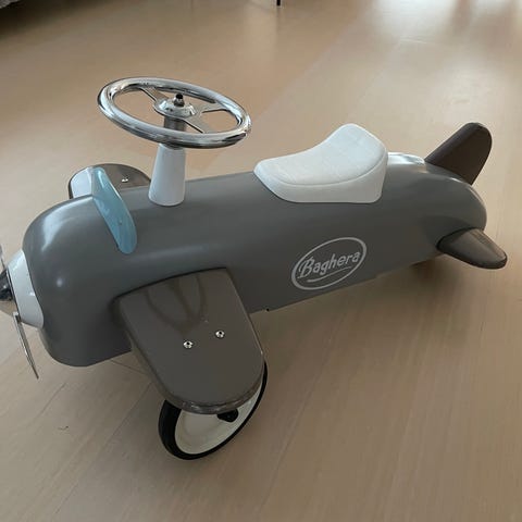 Her starter drømmen om at flyve. Skøn gåflyver til de mindste, i super lækker stålkvalitet, med hjul og rigtigt styretøj.