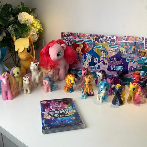 6 stk. “My Little Pony” figure samt en kam, en matchende spejlboks, en bog, en æske med “my little pony” børneplaster og sæbebobler. Alt i fin stand, kan sendes.
