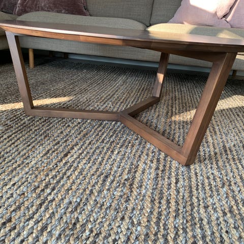 Sofabord, Boconcept, valnød, b: 68 l: 115 h: 49, Sofabord fra Boconcept med bordplade i valnød på metalsokkel. Bordet er lettere brugt.