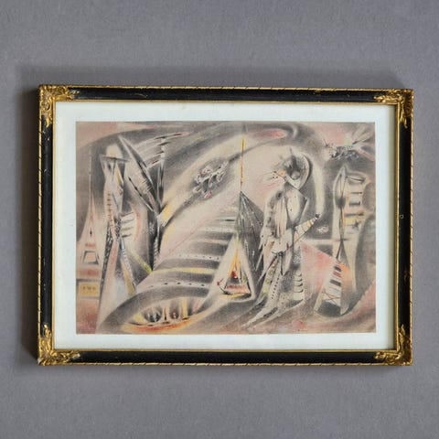 Står i flotte farver og med ramme i guld, står generelt i virkelig flot stand med et fangende motiv.