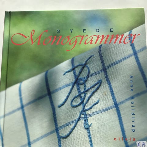 "Det er moderne at dekorere med små broderier og monogrammer, som det fx ses i Lene Ostenfeldt: "Servietter", 2003. Her er så Anne Abildtrups første bog der udelukkende handler om syning af monogrammer. Hun skriver: "Tidens kvinder kræver tid til ro og fordybelse" og peger på glæden ved at brodere. Efter en kort indledning om monogramsyning og om navneklude kommer så forslag til monogrammer på viskestykker, forklæder, servietter, toiletposer, betræk til en varmedunk m.m. Nogle af de ting der dekoreres, er købt færdige - enten nye eller brugte - andre skal man selv sy. Der er udmærkede arbejdsbeskrivelser til syning af de forskellige ting. Bogens monogrammer er lavet i forskellig broderiteknik og stilart, både klassiske og mere moderne. Yngre læsere kan nok have svært ved at tyde de - meget dekorative - gotiske bogstaver der er tegninger til. Der er mønsterark med alfabeter - enkelte af dem har dog kun et udvalg af bogstaver. En enkelt opskrift er trykt med et billede som baggrund og kan ikke læses. Ellers kan man udføre alle arbejderne efter anvisninger i bogen; eller man kan blot lade sig inspirere af eksemplerne".
