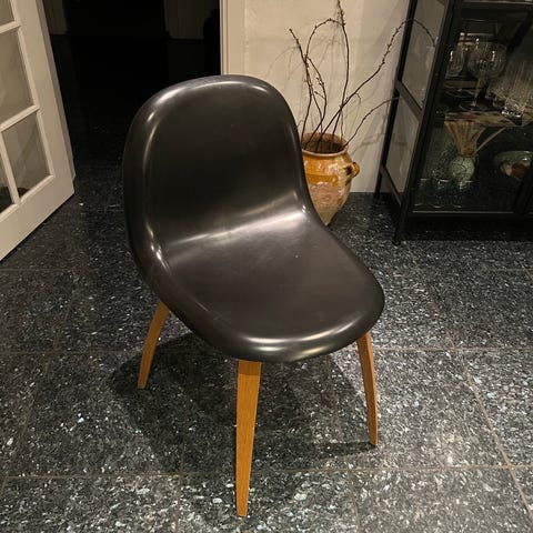 GUBI, 3D Dining chair, Stol, 2 GUBI 3D DINING CHAIR Gubi sorte stole i plast med egetræs ben. Flot stand. Sælges samlet. Pris 1.500 kr. pr. stk.